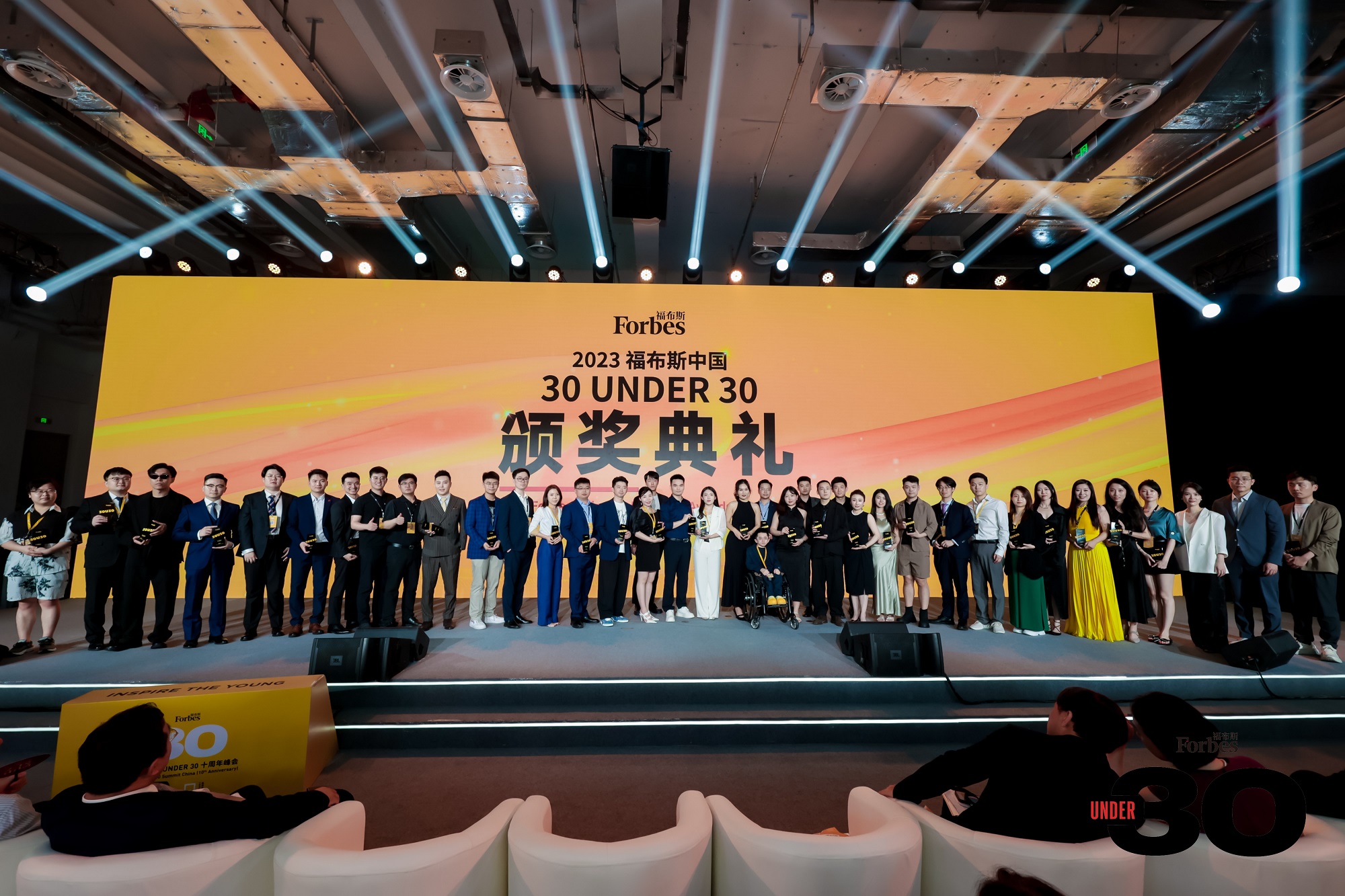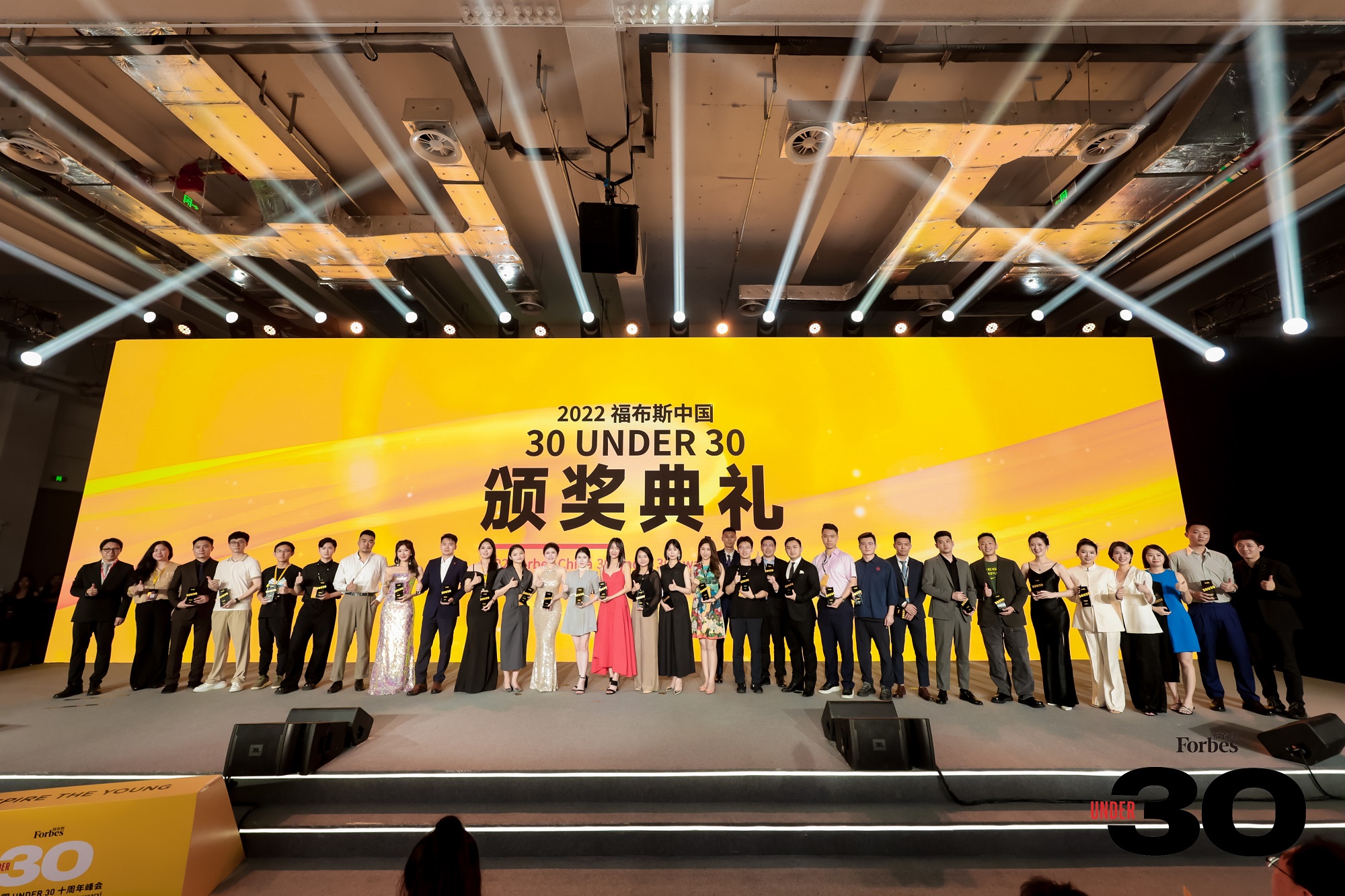 接着,现场举行了2022年和2023年福布斯中国u30颁奖典礼,福布斯中国集团总裁张清琏,愉悦资本创始合伙人刘二海,中央美术学院美术馆馆长、博士生导师靳军,盟浪首席执行官白虹,国中资本首席合伙人、董事长施安平,前中国女排队长、国际排联市场与传播委员会委员惠若琪,松美术馆执行馆长李克非,诺诚健华联合创始人、董事长兼ceo崔霁松等人共同为u30上榜者颁奖。