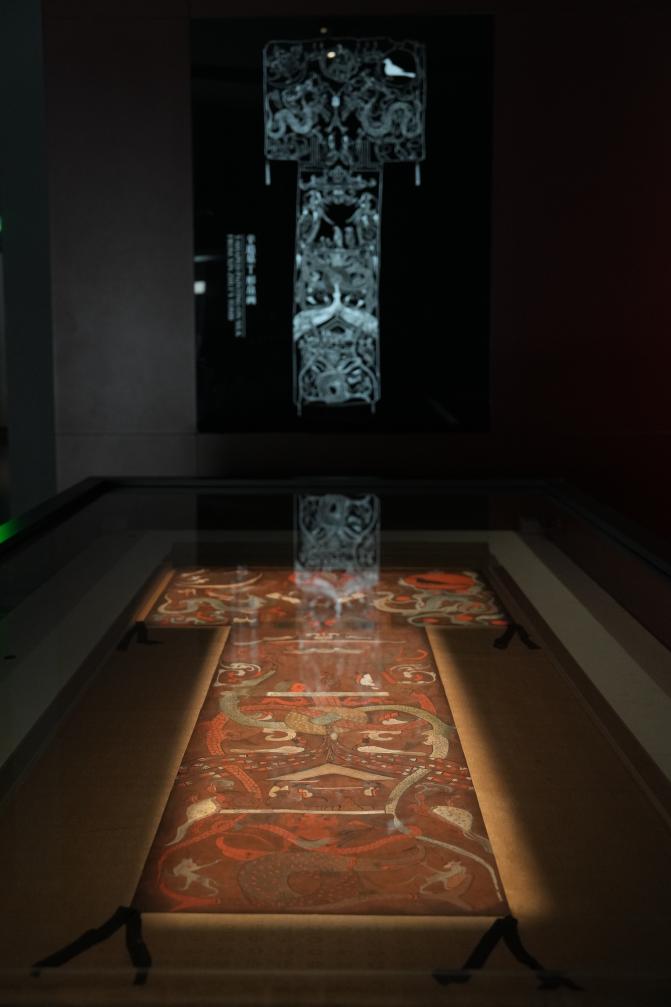 这是在湖南博物院长沙马王堆汉墓陈列展厅拍摄的t形帛画。记者 薛宇舸 摄
