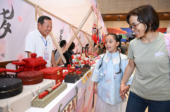 2024年8月7日,人们在中国工艺美术馆(中国非物质文化遗产馆)举办的非遗市集上参观。记者 李贺 摄