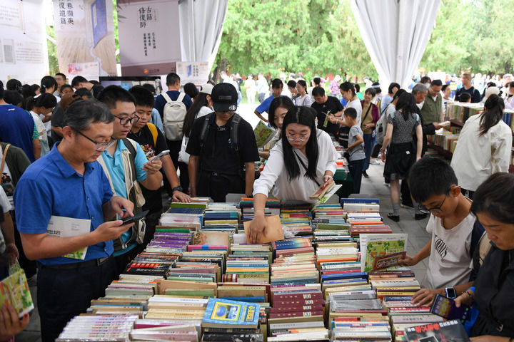 2024年9月15日,人们在“我与地坛”北京书市上选购旧书。记者 陈钟昊 摄