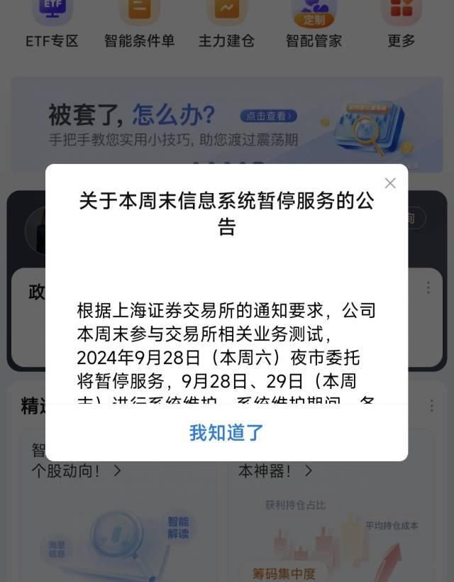 在9月29日打开券商软件的股民,大概只能接到券商的暂停信息系统服务的通知,夜市委托也暂停服务。测试完成后即可恢复。