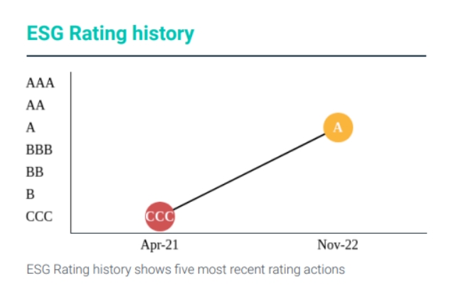 图:悦刻历年msci esg评级。悦刻成为全球范围内首家单次评级中跃升4级的企业。