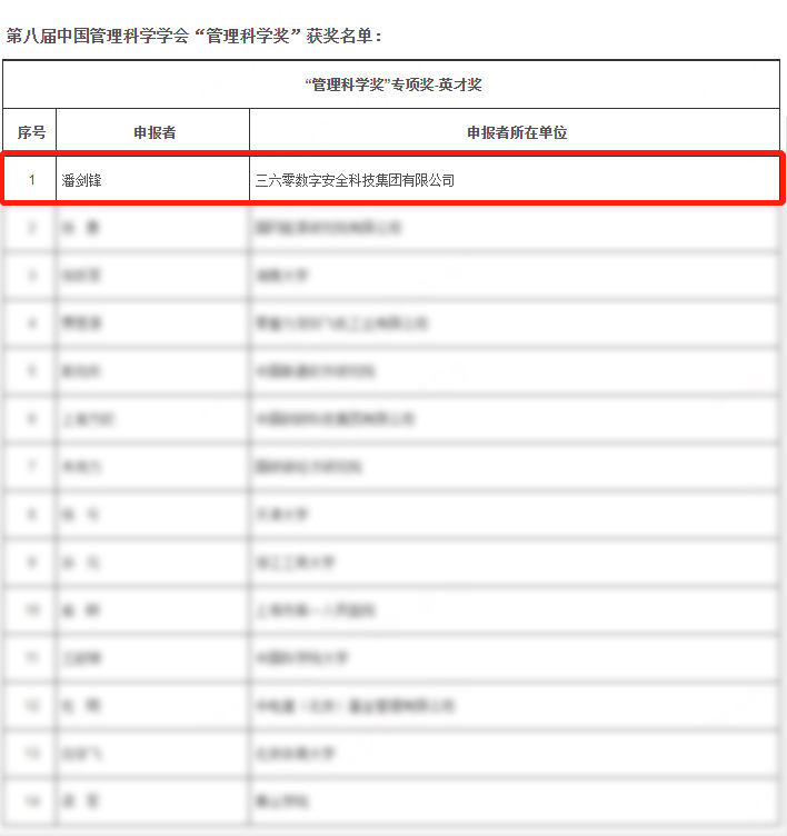 近日,第八届中国管理科学学会“管理科学奖” 获奖名单出炉,360集团副总裁兼首席科学家潘剑锋荣获第八届管理科学奖英才奖。