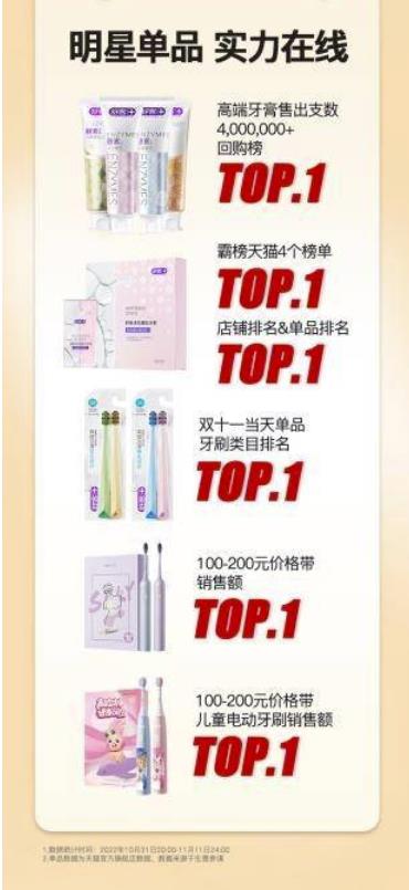 一年一度的全面狂欢购物节已经谢幕,各品牌陆续推出了自己的“战绩”。虽然,在口腔护理领域,受环境及国民消费日趋理性影响,大盘线上销售数据整体表现不如预期。但数据显示,民族口腔护理领域舒客、舒客宝贝的不少单品再一次刷新了品牌的记录,充分彰显了品牌的产品力。今年双十一,成人护理舒客的酵素美白牙膏继续霸榜天猫美白牙膏回购榜top 1;另一款明星单品舒客美白牙贴同样霸榜天猫4个榜单top 1;除此之外,舒客的高效洁净手动牙刷,g33电动牙刷,舒客宝贝的声波电动牙刷也获得了不少消费者的选择。