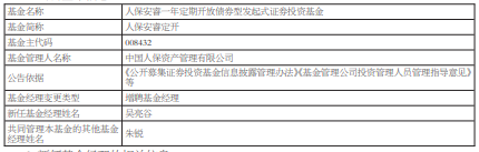北京12月20日讯 今日,中国人保资产管理有限公司发布公告,人保安睿定开增聘基金经理吴亮谷。