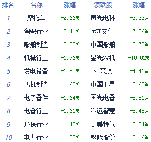 北京12月21日讯 今日早盘,三大指数小幅高开后震荡走低,临近午间收盘三大指数集体翻绿;午后,三大指数低位震荡整理,创业板指盘中失守2300点。盘面上,酒店旅游、酿酒行业、商业百货等板块涨幅居前,摩托车、陶瓷行业、船舶制造等板块跌幅居前;题材方面,预制菜、水产品、鸡肉、新零售等概念活跃。