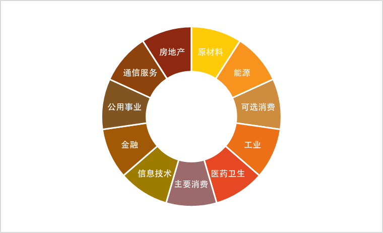 行业指数的成份股均归属于某个特定行业。不同机构的行业分类标准千差万别,导致行业指数也林林总总,不胜枚举。例如,申万一级行业指数有31个,而按中证指数公司的行业分类标准,中证一级行业指数共分为了如下11个: