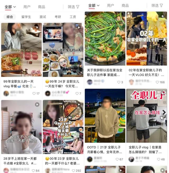 观察者网还注意到,在各大社交平台,分享“全职儿女”的女性网友偏多。