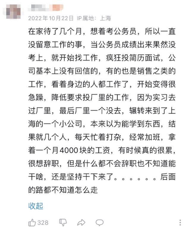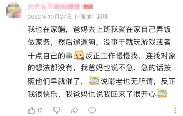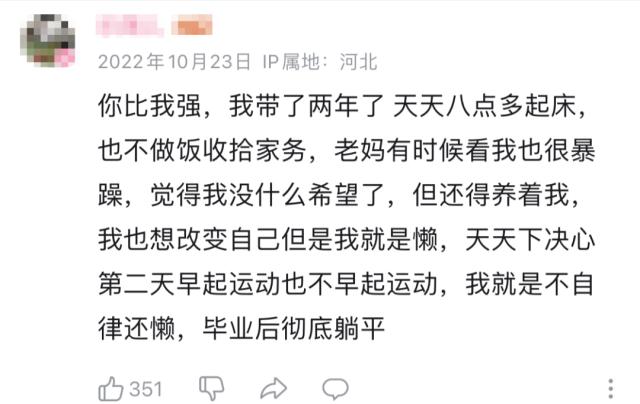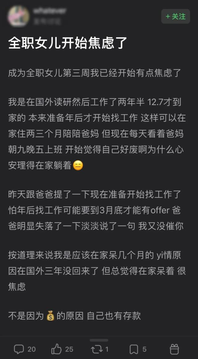 但这段“全职女儿”的经历,引起了不少同龄人共鸣。他们要么回忆自己的待业、求职的经历。