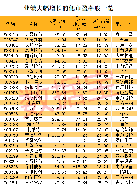 上述净利润翻倍或扭亏的公司中,截至目前,滚动市盈率低于30倍的有29只。立霸股份滚动市盈率4.03倍排在最低位置,上半年公司实现净利润6.68亿元,同比增长110.68%。报告期内,公司通过股权投资基金卖出拓荆科技收回了投资收益。