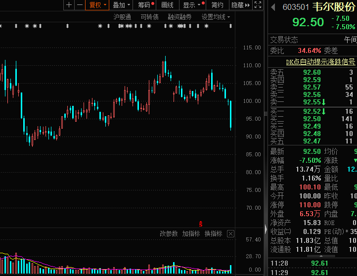 资料显示,韦尔股份是全球前三大cmos图像传感器供应商之一,2021年净利润首次突破40亿元,当年7月份股价创下历史高点。2022年净利润大幅下滑,股价随之大幅回落。今日早盘,公司股价盘中跌超8%,股价较历史高点回撤超60%。