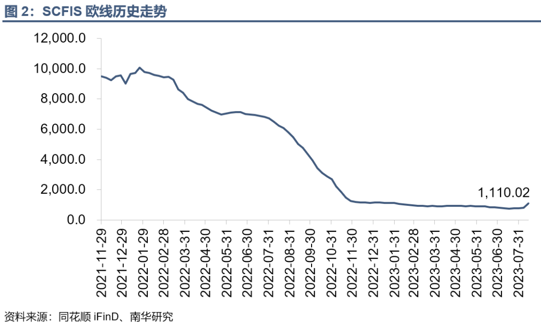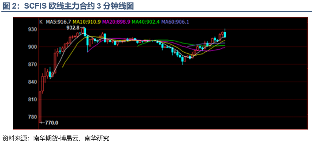 从现货角度来看,本周一(8月14日)公布的标的指数上海出口集装箱结算运价指数(scfis)最新一期为1110.02点,较前值上涨幅度达33.92%,可谓暴涨;而8月18日公布的上海出口集装箱运价指数(scfi)上海-欧洲线运价最新一期为561.98美元/teu,较上期下跌6.75%。所以单就期现角度来看,形成较强升水。