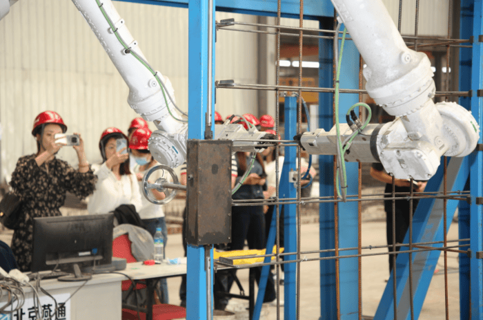 除清筋板生产线外,厂区内的“纵肋叠合剪力墙(预制构件)”生产线还引进了机器人绑扎钢筋技术,其设置越来越接近工业化和数字化,不仅提升了工艺水平和产品性能,还大幅节约了人工成本和建筑能耗。