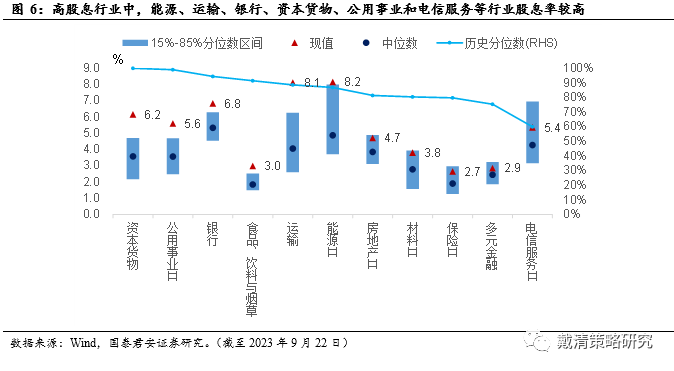 目前能源、运输和电信服务等行业股息率较高