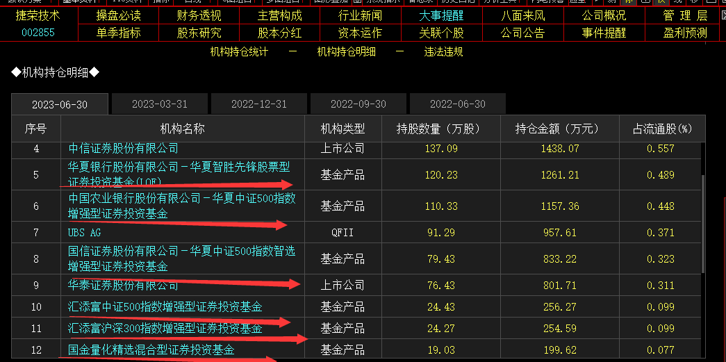 这些牛股,都被哪些机构抓住了呢?不看不知道,一看吓一跳,这些大牛股,他们的机构股东名单中,都有“量化基金”的身影。