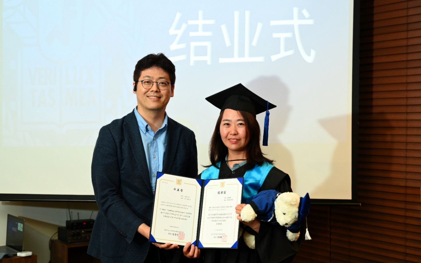 杨维娜接受首尔大学生物科技研究院颁发的访韩研学结业证书
