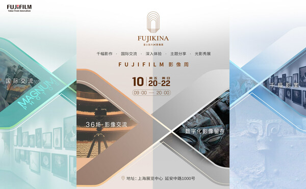 10月20日至10月22日,fujikina 富士胶片影像周即将在上海展览中心举办。这是一场由富士胶片发起的影像文化交流盛会,现场将设有千幅影展、沉浸光影秀、深度体验、国际摄影工作坊和大咖影像交流等不同版块,为来自全球的专业摄影师、从业者以及影像文化艺术爱好者们提供精彩纷呈的互动体验、学习交流和思想碰撞机会,欢迎所有影像艺术爱好者和专业摄影师群体亲临现场参与。届时,富士胶片中国合作摄影师、行业大咖以及来自玛格南图片社的摄影师们也将站上fujikina的舞台,带来15场主题影像交流活动及30余场workshop现场教学,主题涉及风光、肖像、视频、商业、美食、建筑、艺术、人文,不容错过。