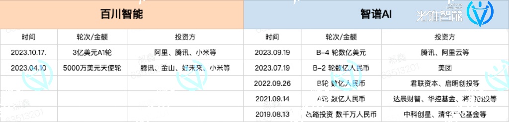 从融资上看,智谱ai和百川智能都在今年,完成了多轮大额融资。
