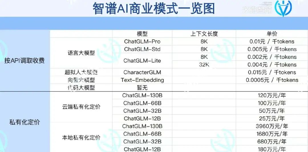 据光锥智能梳理发现,结合中国企业的落地情况,智谱ai的商业模式分为api调取收费和私有化收费模式。
