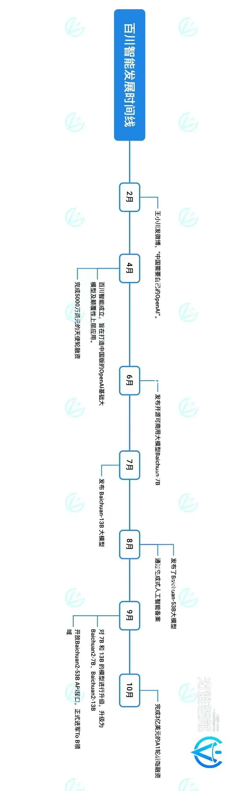 百川智能成立半年,便接连发布了baichuan-7b/13b,baichuan2-7b/13b四款开源可免费商用大模型及baichuan-53b、baichuan2-53b两款闭源大模型。截至9月25日开放baichuan2-53b api接口,过去的168天里,百川智能平均以月为单位的速度发布一款大模型。
