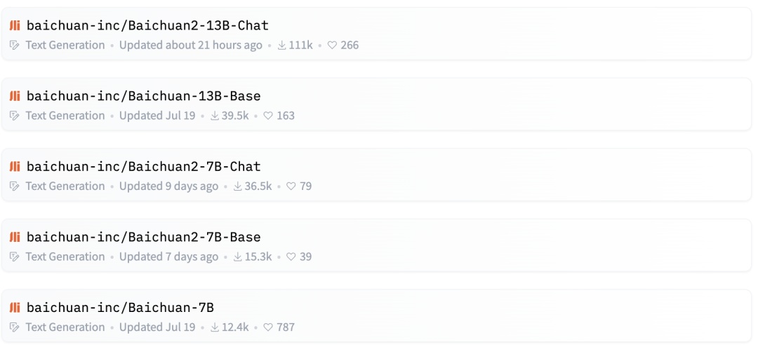光锥智能发现,百川智能系列模型在hugging face开源社区的最高下载量有11万多,在中外开源大模型中仍具有竞争力。