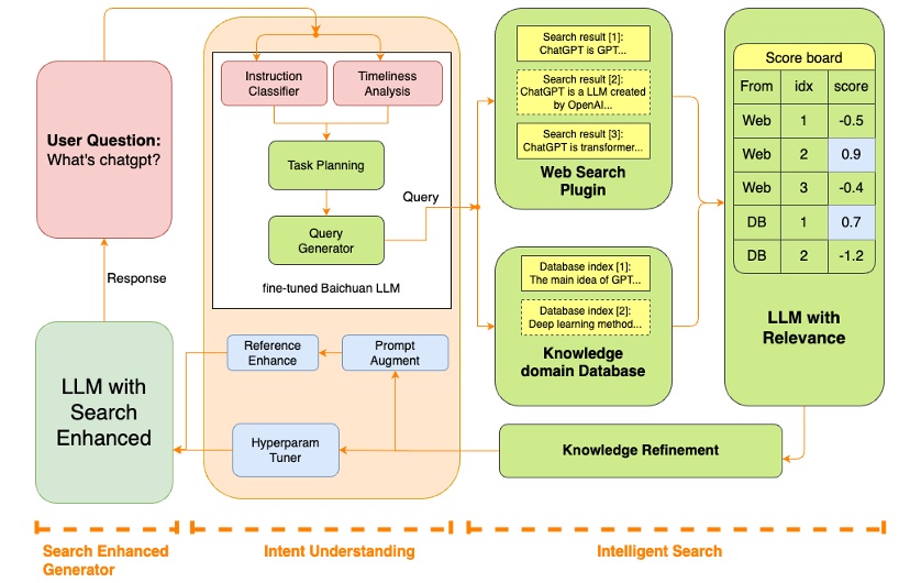 在提升数据质量上,百川智能的核心思路是“始终取优”,以低质、优质为标准将数据进行分类,确保baichuan2-53b始终使用优质数据进行预训练;在信息获取方面,baichuan2-53b对多个模块进行了升级,包括指令意图理解、智能搜索和结果增强等关键组件,通过深入理解用户指令,精确驱动查询词的搜索,最终结合大语言模型技术,优化模型结果生成的可靠性。