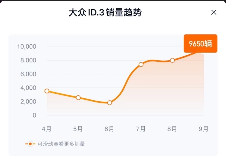 大众方面,以id.3为例,今年3月,id.系列纯电限时大促,全系至高立减3万元;7月,id.3宣布推出限时价格,降价幅度至高达3.7万元,起售价降低至12.59万元。从销量走势上看,据汽车之家援引行业销量综合数据显示,该车9月卖出9650辆,作为参考,其6月销量仅为1819辆。