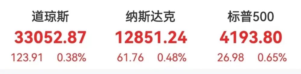 当地时间10月31日,美股三大股指收高。道指涨123.91点,涨幅为0.38%,报33052.87点;纳指涨61.76点,涨幅为0.48%,报12851.24点;标普500指数涨26.98点,涨幅为0.65%,报4193.80点。