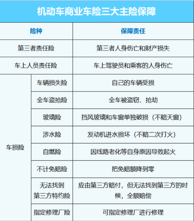 商业险包括三大主险:三者险,车损险,座位险,还有十一项附加险。