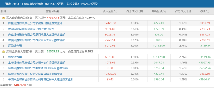作为近期风口题材——短剧概念的板块人气龙头,中文在线近日股价上演“狂飙”行情,月内累计共获2次20cm涨停,另有2个交易日单日涨幅超10%。资金面上,多路知名游资和量化近日携手入场,以11月8日龙虎榜为例,在买入榜前五席位中,国盛证券宁波桑田路、兴业证券厦门湖里大道、中信证券西安朱雀大街三路游资常用席位和量化常用席位中国国际金融上海分公司在列。