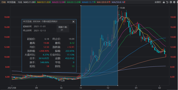 注:中文在线2021年11月至12月期间股价翻倍式上涨