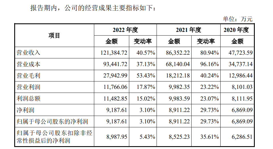 东方科脉在业绩方面,2020年至2022年,公司实现营业收入分别为4.77亿元、8.64亿元、12.14亿元;实现归母净利润分别为6869.09万元、8911.22万元、9187.61万元;从数据上来看,东方科脉近两年的业绩并不抢眼。